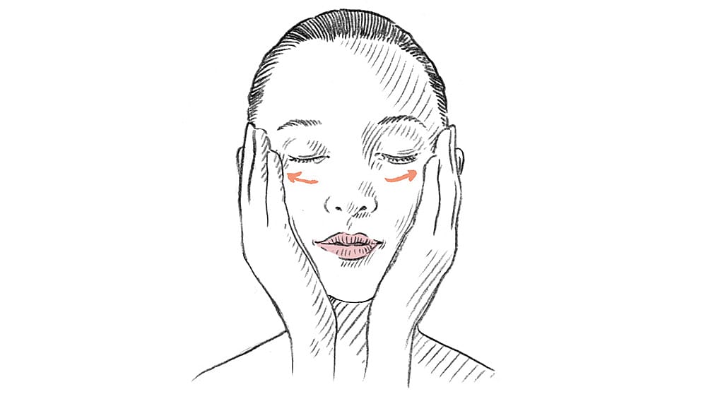 Step 1: Stimulate circulation - Gently place both hands on the face and stroke outwards towards the ears, gently and without pressure.